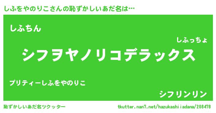 | 意味不明あだ名 | 『自称しふをやのりこ』 |