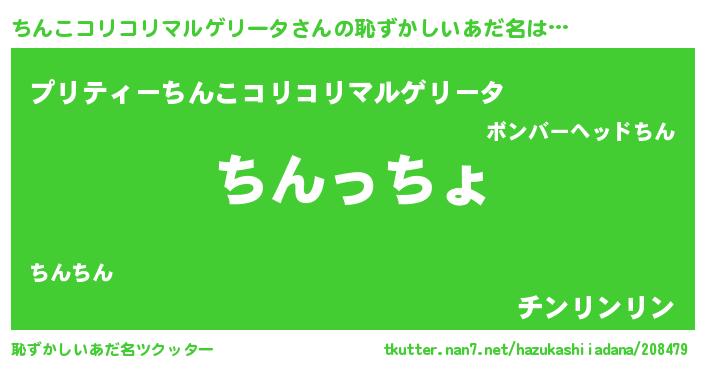 | ファンタジー風あだ名 | 『エターナルチンココリコリマルゲリーター』 |