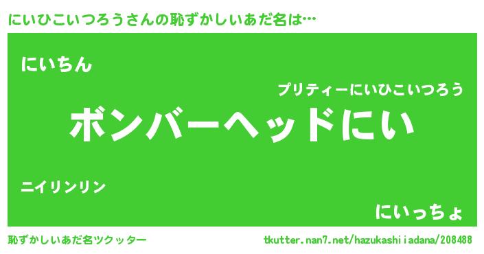 | ヘコむあだ名 | 『にいひこいつろう(笑)』『なまこ酢』 |