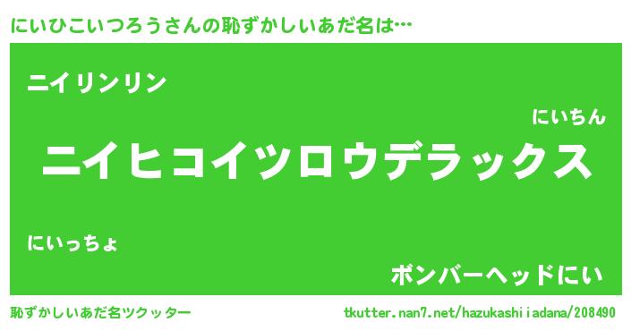 | 意味不明あだ名 | 『自称にいひこいつろう』 |