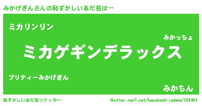 | ヘコむあだ名 | 『みか太郎』『みかげぎん(小並感)』 |