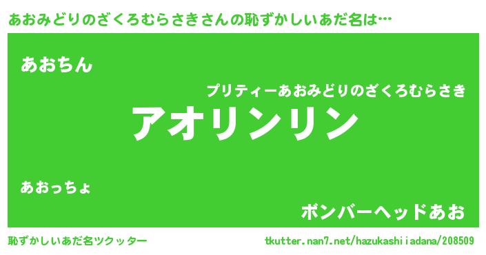 | 男性向けラノベタイトル風あだ名 | 『あおみどりのざくろむらさき~年齢イコール彼女いない歴の魔法使い~』 |