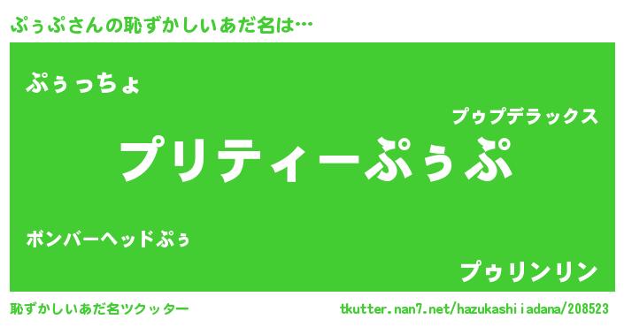 | 2回繰り返すあだ名 | 『ぷぅぷぅ』『ぷぷぅぅ』『さわさわ』 |