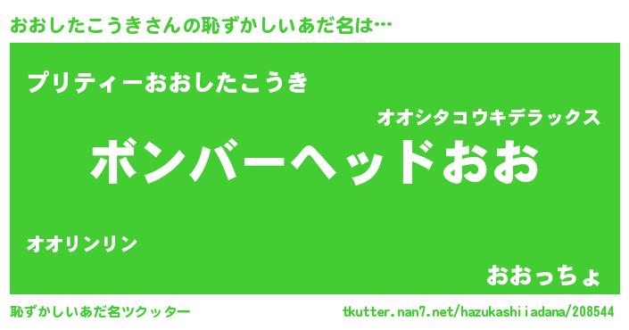 | 男性向けラノベタイトル風あだ名 | 『転生したらおおしたこうきだった件』 |