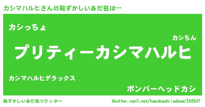 | 男性向けラノベタイトル風あだ名 | 『カシマハルヒアートオンライン』 |
