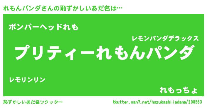 | 男性向けラノベタイトル風あだ名 | 『れもんパンダに滅ぼされるだけの簡単なお仕事です』 |