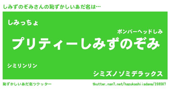 | 胡散臭い通販商品みたいなあだ名 | 『モテモテ間違いなし霊験あらたかなお札…その名も「しみずのぞみ」』 |