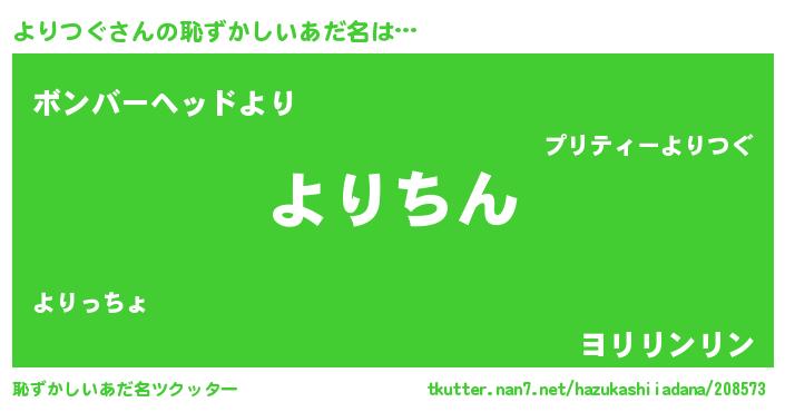 | 意味不明あだ名 | 『永久保存よりつぐ』『ペロリンよりつぐ』 |