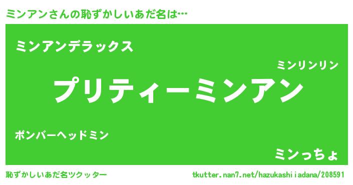 | 可愛いあだ名 | 『ミんミん』『ミンうちぇる』 |