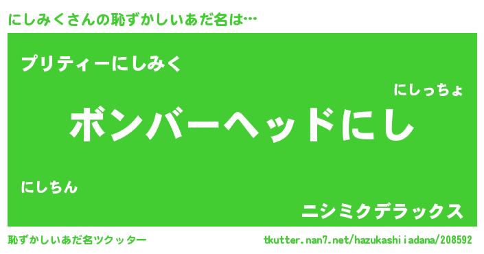 | ヒーロー風カッコイイあだ名 | 『慈愛の使者にしみく』『ネオニシミク』 |