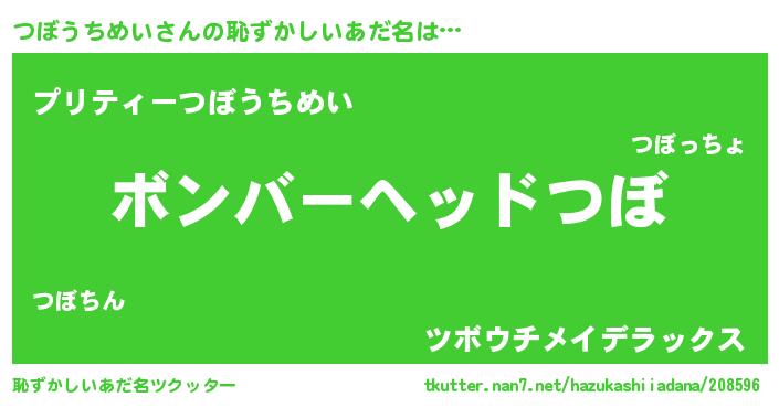 | ヒーロー風カッコイイあだ名 | 『仮面ツボダー』『スーパーツボウチメイ』 |