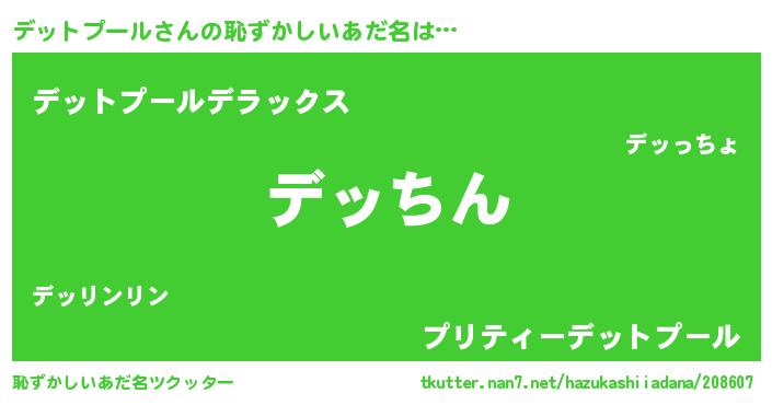 | ヘコむあだ名 | 『デットプール(遠い目)』『デッもー』 |
