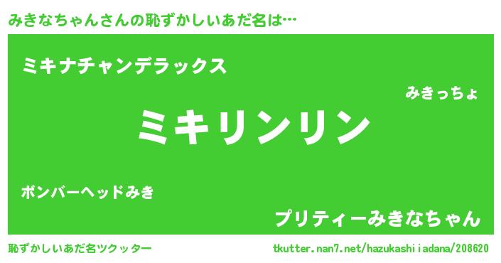 | 意味不明あだ名 | 『とにかく怪しいみきなちゃん』 |