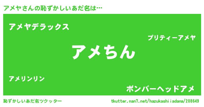 | ヘコむあだ名 | 『アメヤ(笑)』『アメもー』『豆乳』 |