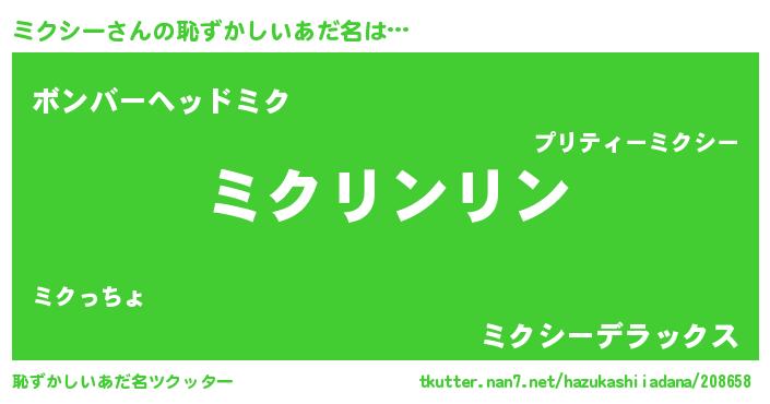 | 胡散臭い通販商品みたいなあだ名 | 『信頼と実績のサプリメント…その名も「ミクシー」』 |