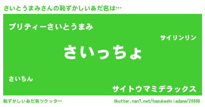 | 男性向けラノベタイトル風あだ名 | 『うちのさいとうまみが世界を掌握している!』 |