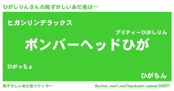 | 男性向けラノベタイトル風あだ名 | 『緋弾のヒガシリン』 |