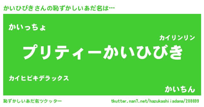 | 男性向けラノベタイトル風あだ名 | 『カイヒビキアートオンライン』 |