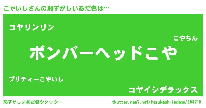 | 女子向けラノベタイトル風あだ名 | 『こやいし恋絵巻』『闇のこやいし』 |