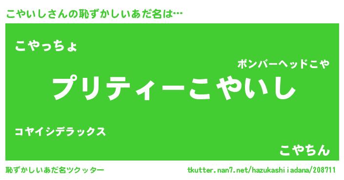 | 意味不明あだ名 | 『ペロリンこやいし』『永久保存こやいし』 |