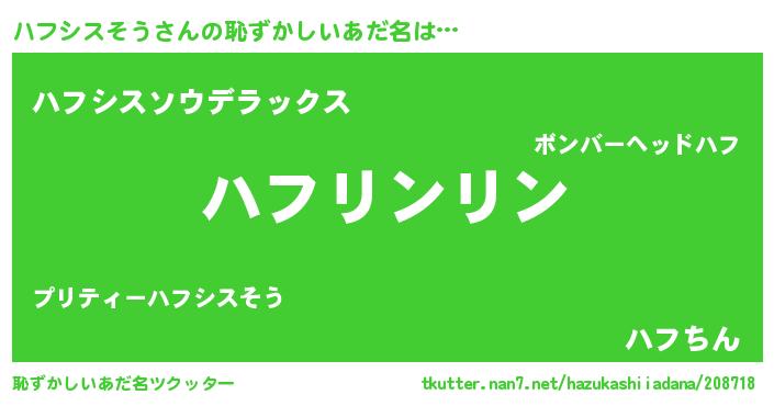 | ヘコむあだ名 | 『ハフっちょ』『ハフシスそう(小並感)』 |