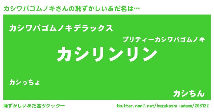 | ヘコむあだ名 | 『カシっ子』『カシワバゴムノキ(笑)』 |
