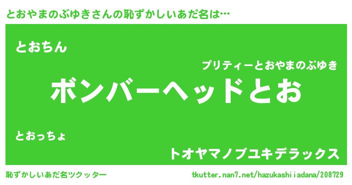| ヘコむあだ名 | 『とおやまのぶゆき(震え声)』『とおにー』 |