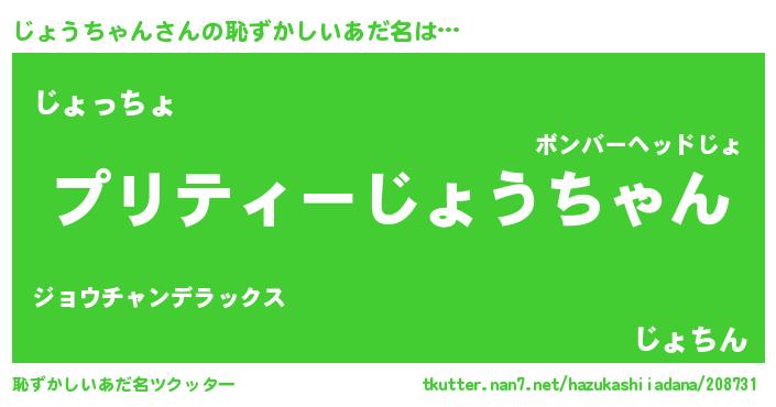 | 男性向けラノベタイトル風あだ名 | 『じょうちゃんの憂鬱』 |