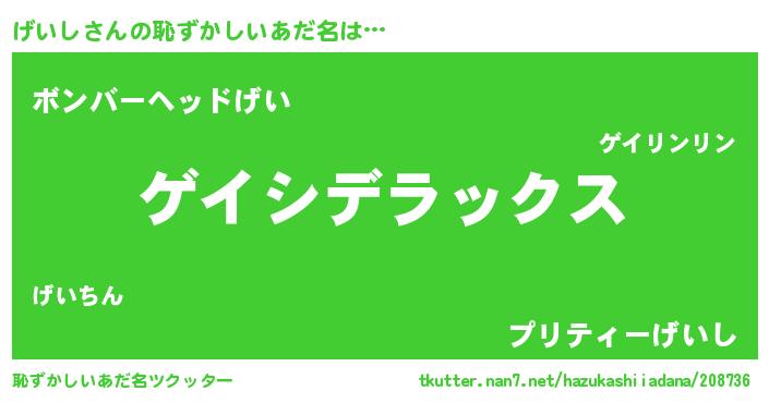 | ヒーロー風カッコイイあだ名 | 『最強戦士ゲイシ』『仮面ゲイダー』 |