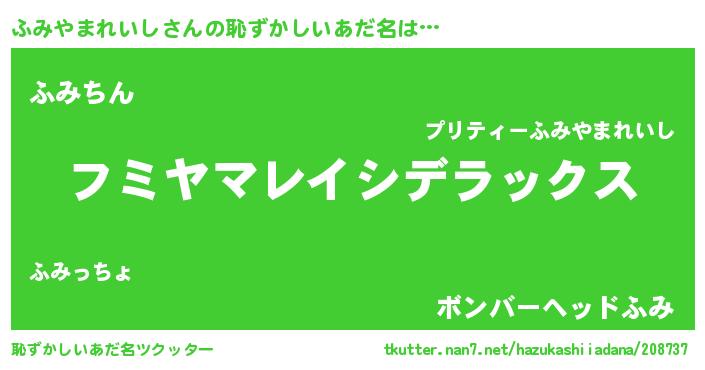 | 意味不明あだ名 | 『自称ふみやまれいし』 |