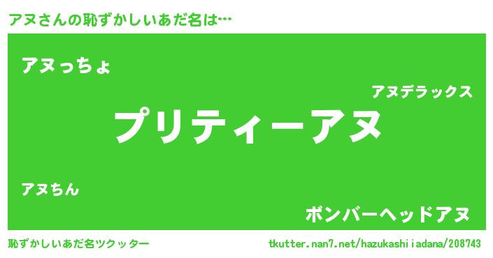 | ポケモン風あだ名 | 『アヌチュウ』『アヌダネ』 |