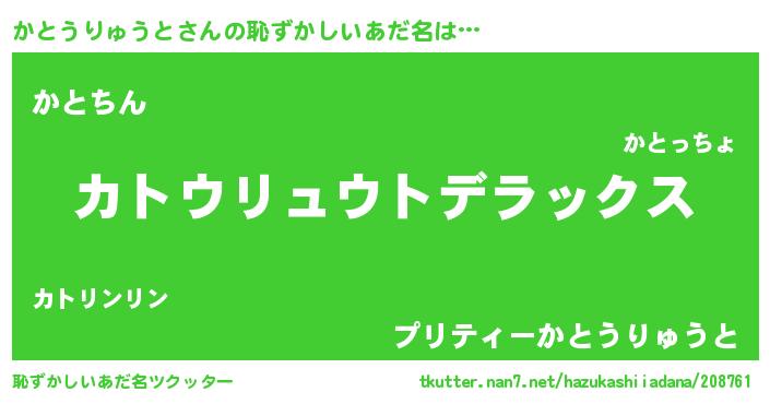 | 意味不明あだ名 | 『自称かとうりゅうと』 |