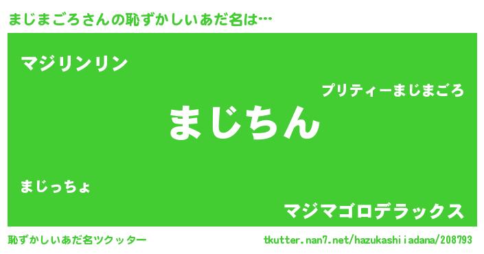 | 意味不明あだ名 | 『永久保存まじまごろ』『自称まじまごろ』 |