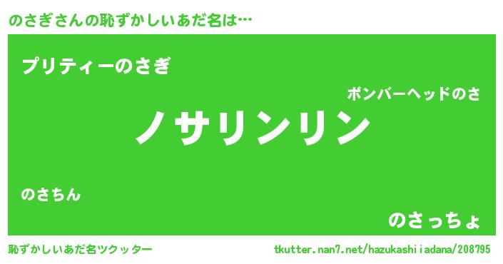 | ヘコむあだ名 | 『のさっぺ』『のさにゅー』 |