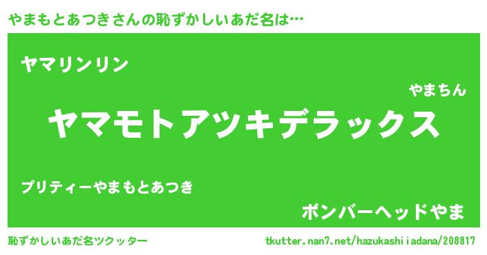| ヘコむあだ名 | 『やまを』『やまもとあつき(爆)』 |