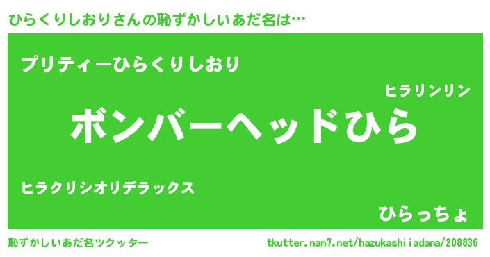 | 料理風あだ名 | 『ひらくりしおりのトマト煮』 |