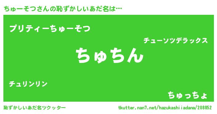| 意味不明あだ名 | 『永久保存ちゅーそつ』『自称ちゅーそつ』 |