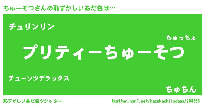 | ヘコむあだ名 | 『ちゅっふぃ~』『ちゅ太郎』 |