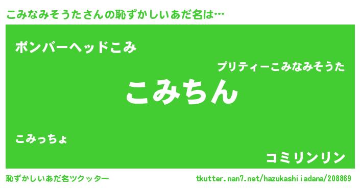 | ヘコむあだ名 | 『こみなみそうた(笑)』『こみぷりん』 |