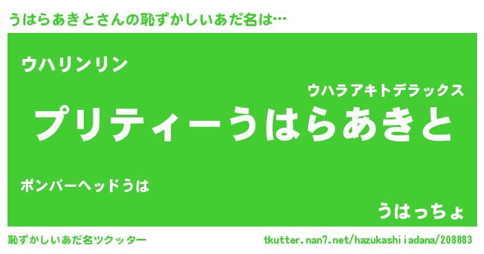 | ヒーロー風カッコイイあだ名 | 『スーパーウハラアキト』『仮面ウハダー』 |