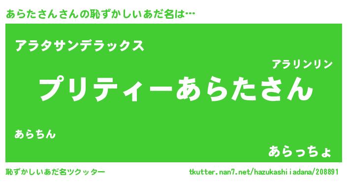 | ヒーロー風カッコイイあだ名 | 『スーパーアラタサン』『天弓騎士アラ』 |