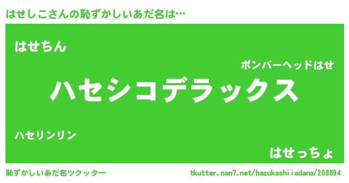 | ヘコむあだ名 | 『はせしこ(爆)』『牛乳』『はせを』 |