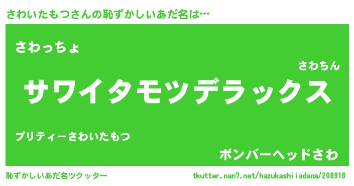 | 意味不明あだ名 | 『自称さわいたもつ』 |
