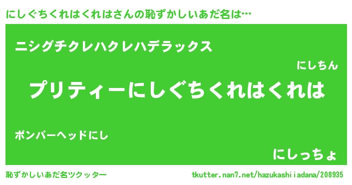 | 胡散臭い通販商品みたいなあだ名 | 『モテモテ間違いなし霊験あらたかなお札…その名も「にしぐちくれはくれは」』 |