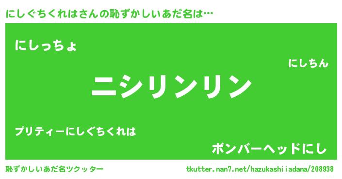 | ヘコむあだ名 | 『にしっぺ』『つくし』 |