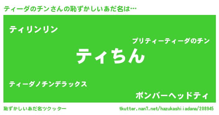 | 男性向けラノベタイトル風あだ名 | 『ティーダのチンという概念が存在しない退屈な世界 』 |