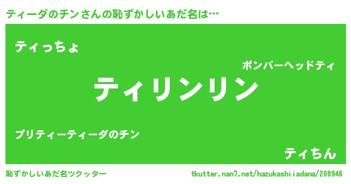 | ヘコむあだ名 | 『ティっ子』『牛乳』『ティにー』 |