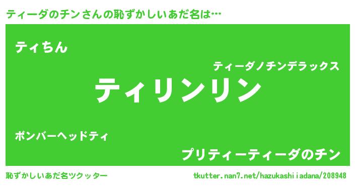 | 男性向けラノベタイトル風あだ名 | 『緋弾のティーダノチン』 |