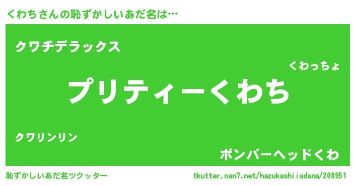 | 意味不明あだ名 | 『ペロリンくわち』『自称くわち』 |