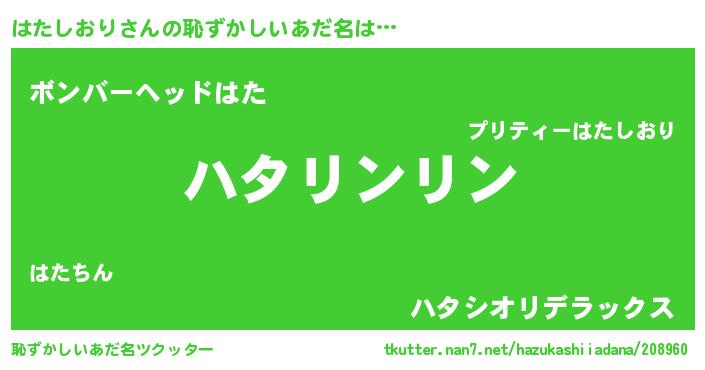 | ポケモン風あだ名 | 『ヒハタシオリ』『ハックウザ』 |